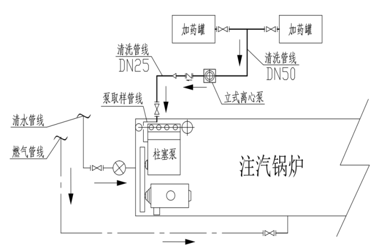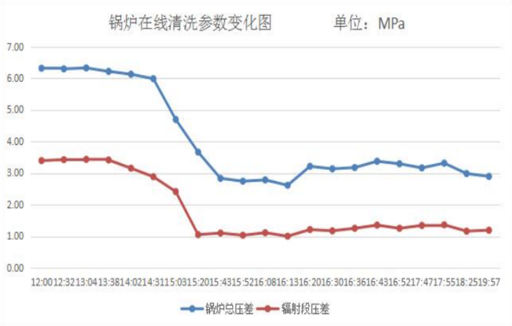 不停炉在线清洗技术成功的解决了锅炉持续生产与传统停炉清洗之间的矛盾,且清洗施工时间短、效果显著,有效的延长了锅炉清洗周期2倍以上,目前已在新疆油田大面积推广使用,累计在线清洗锅炉150台次以上。